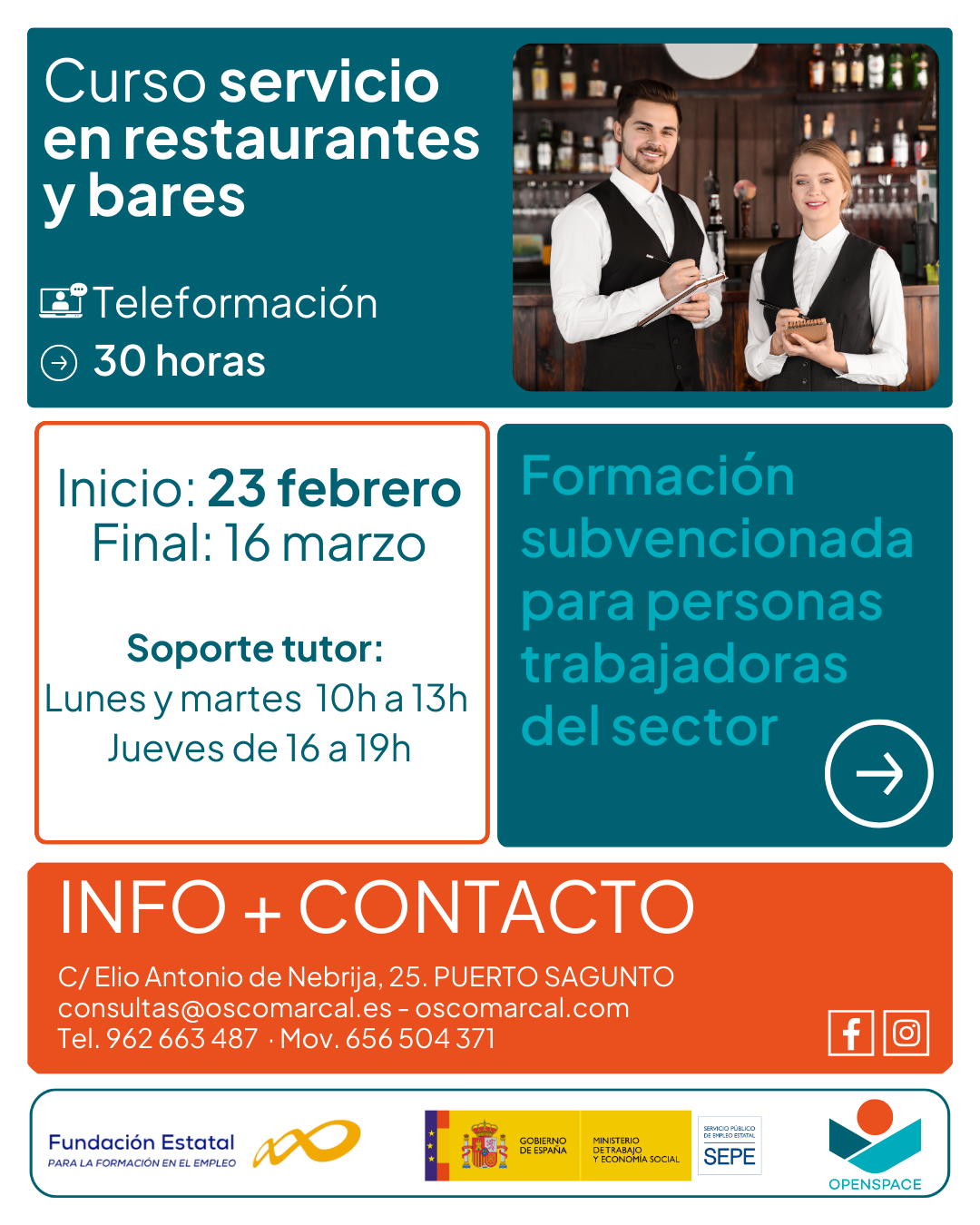 Servicio en restaurantes y bares (30 horas) – Inicio: 23 de febrero