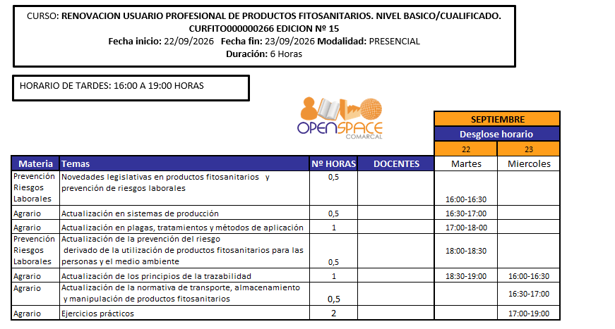 Renovación Profesional Fitosanitarios SEPTIEMBRE