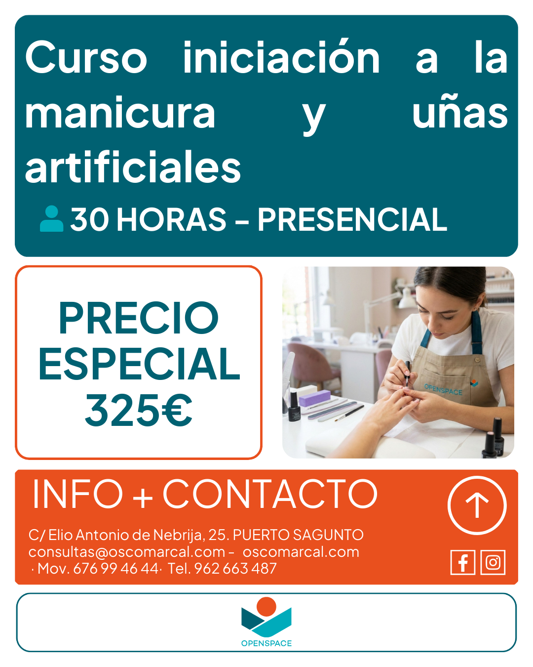 Open Space Comarcal amplía su oferta formativa con el lanzamiento del nuevo Curso de Iniciación a la Manicura y Uñas Artificiales, una formación presencial de 30 horas dirigida a personas interesadas en iniciarse en el sector de la estética y el cuidado de uñas.